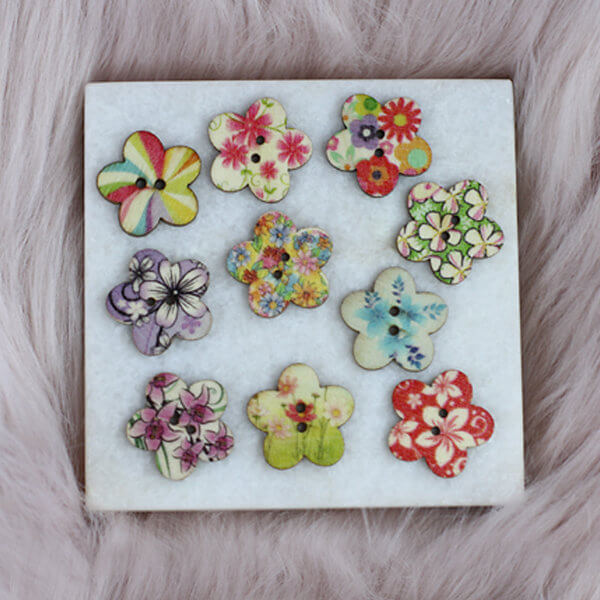 Blomma med olika motiv. 2-hålsknapp. Storlek 25 mm.