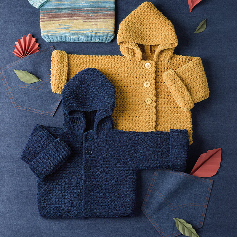 Finns även som stickad variant (blå kofta), se mönster 122-8710-102.